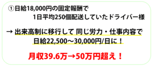多くの現役プロドライバーは、 出来高制に切り替えてから 収入が2倍近く上がった と実感しています。